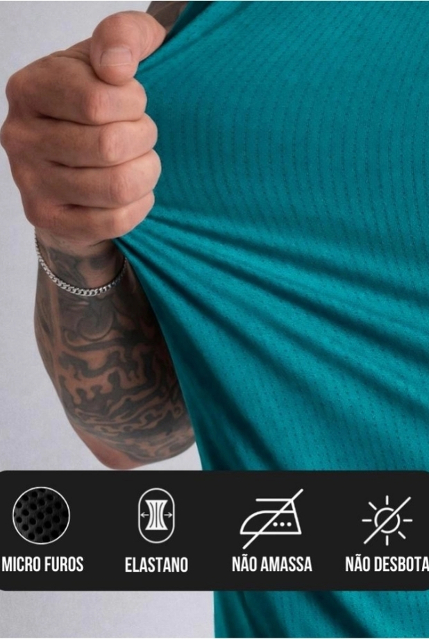 • Composição com Tecido tecnológico: 90% Poliéster + 10% Elastano premium (único no mercado)